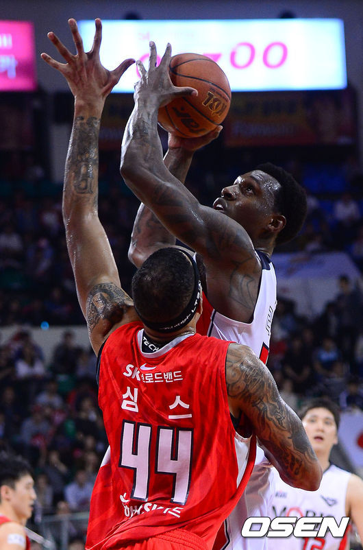 2쿼터 모비스 라틀리프가 점프슛을 시도하고 있다.