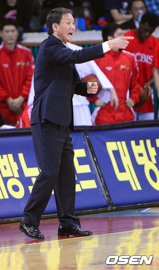 모비스 유재학 감독이 작전지시를 하고 있다.