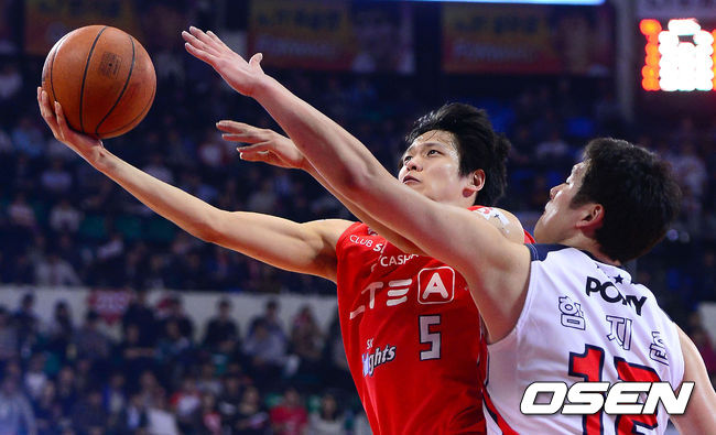 4쿼터 SK 김선형이 레이업슛을 시도하고 있다.