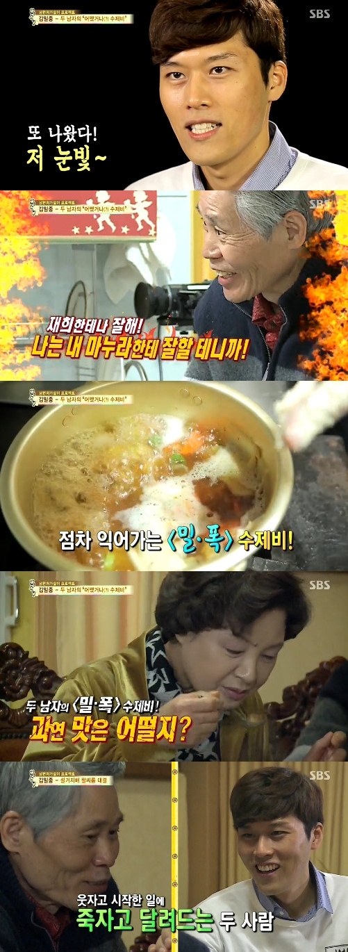 결국 “명령하는 투로 말하니까 처음에는 기분 나쁘더라”라고 불만을 토로한 김일중의 장인. 그래도 두 남자는 완벽한 호흡을 자랑하며 맛있는 수제비를 완성해 아픈 장모를 흡족하게 만들었다.