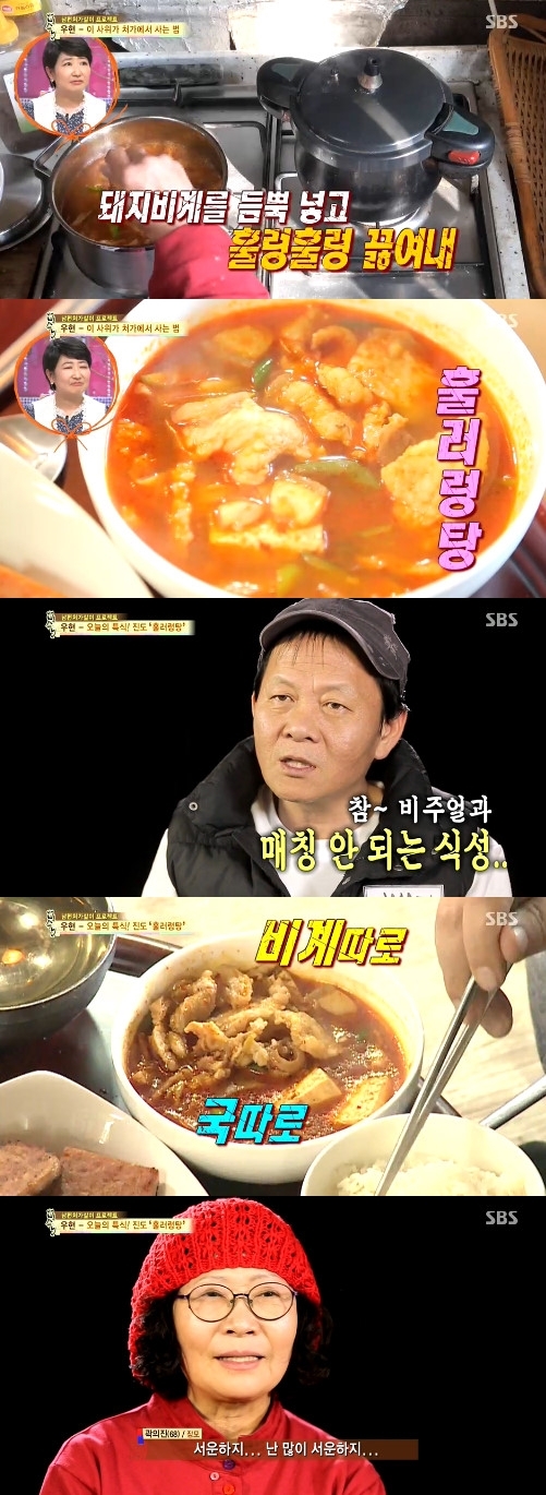 이에 장모는 사위를 위해 훌러덩탕을 정성껏 준비했다. 훌러덩탕은 돼지비계와 각종 채소를 넣고 얼큰하게 끓인 진도 향토음식.