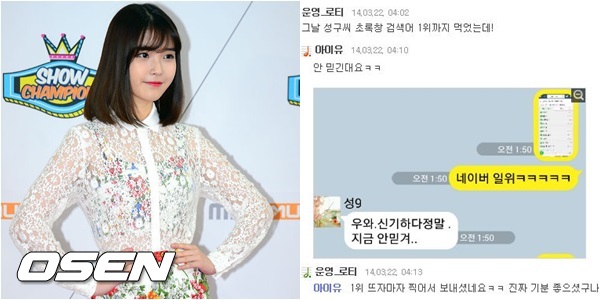 아이유는 최근 자신의 팬 카페에서 팬들과 댓글 대화를 나누는 과정에서 하이포 멤버 김성구와 나눈 스마트폰 메시지 내용까지 깜작 공개했다.