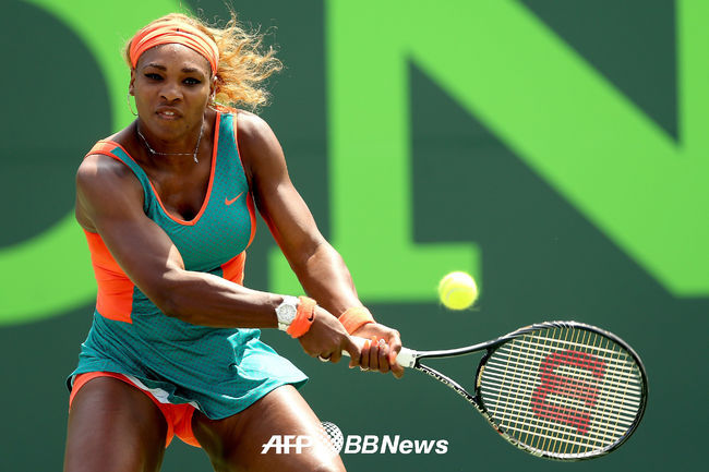 [OSEN=사진팀] 27일(현지시간) 미국 마이애미 플로리다 키 비스케인 크랜든 파크 테니스 센터에서 열린 ‘USA 테니스 소니 오픈’(총상금 542만7천105달러) 여자단식 4강, 마리아 샤라포바(러시아)와의 경기에서 세레나 윌리엄스(미국)가 리턴 샷을 날리고 있다.