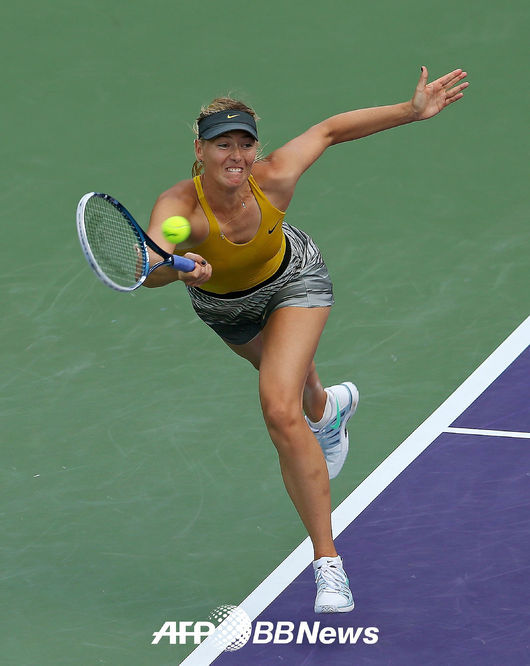 [OSEN=사진팀] 27일(현지시간) 미국 마이애미 플로리다 키 비스케인 크랜든 파크 테니스 센터에서 열린 ‘USA 테니스 소니 오픈’(총상금 542만7천105달러) 여자단식 4강, 세레나 윌리엄스(미국)와의 경기에서 마리아 샤라포바(러시아)가 리턴 샷을 날리고 있다.