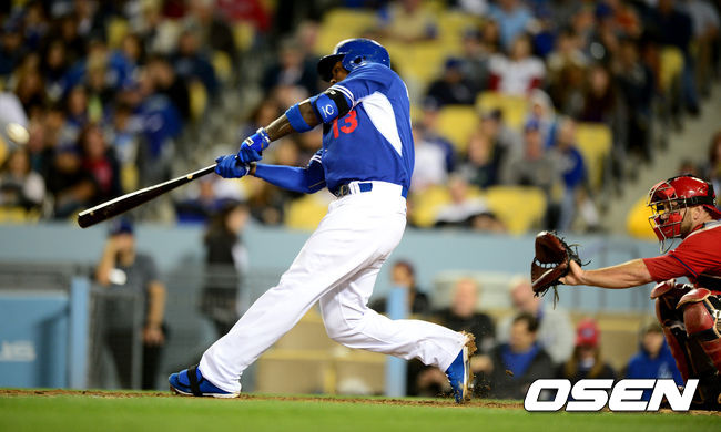 5회말 무사에서 다저스 라미레즈가 연타석 솔로포를 날리고 있다.