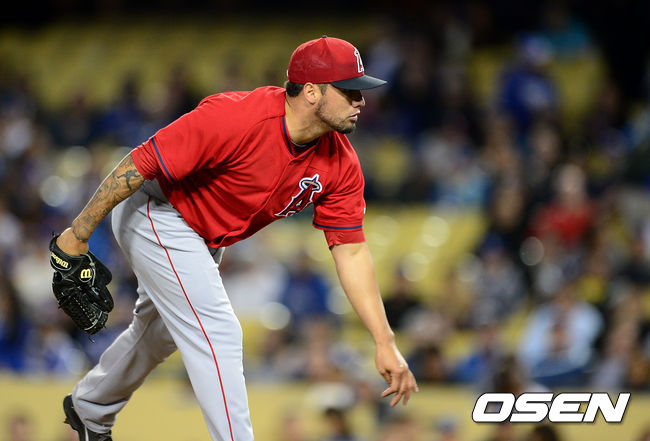LA 에인절스 선발 산티아고가 역투하고 있다.