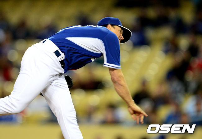 다저스 선발 그레인키가 역투하고 있다.