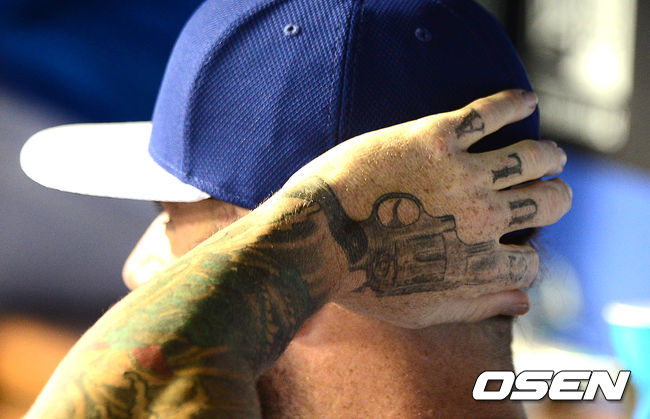 브라인언 윌슨의 손에 권총 타투가 눈에 띈다./ jpnews@osen.co.kr