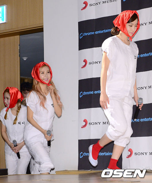 28일 오후 서울 광화문 올레스퀘어에서 진행된 걸그룹 크레용팝 다섯번째 앨범 '어이' 쇼케이스에서 크레용팝이 입장하고 있다