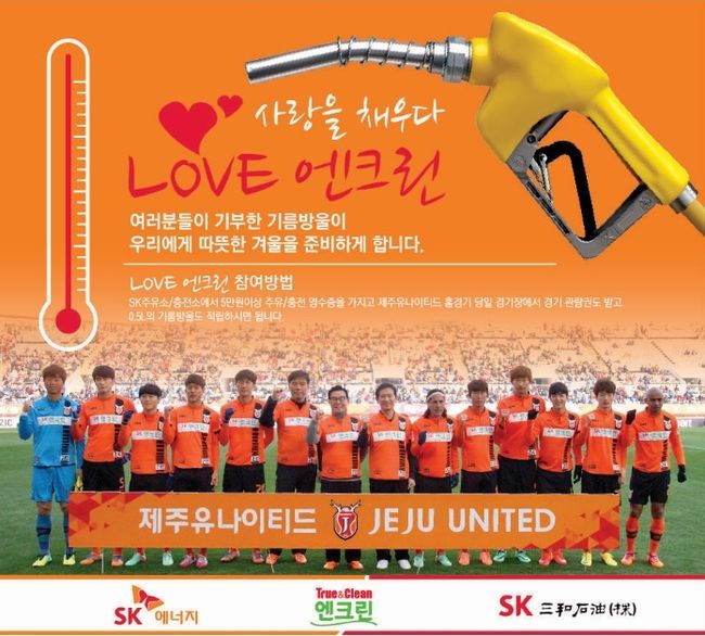 이번 '사랑을 채우다, Love-엔크린 나눔' 캠페인은 2014시즌 제주 홈 경기 대상으로 진행된다. 자세한 문의는 제주유나이티드 대표전화(064-903-1204)로 연락하면 된다.