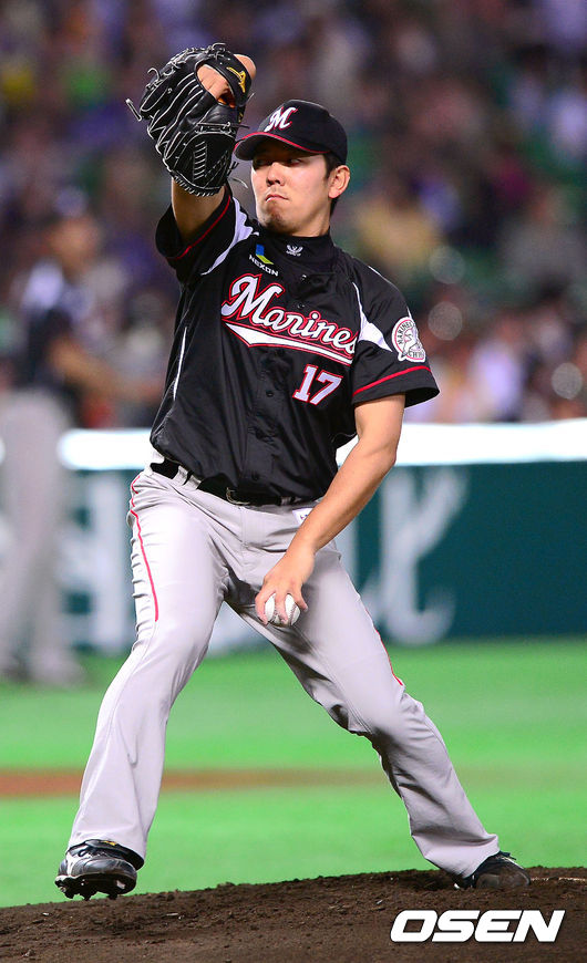 1회말 지바롯데 나루세 요시히사가 역투하고 있다.