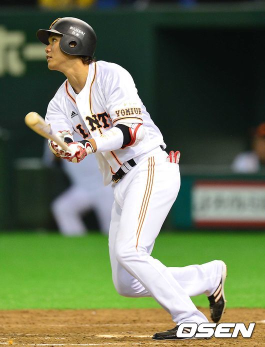 4회말 요미우리 공격 2사 주자없는 상황 1번 사카모토 하야토가 동점 중월 솔로포를 날리고 있다.