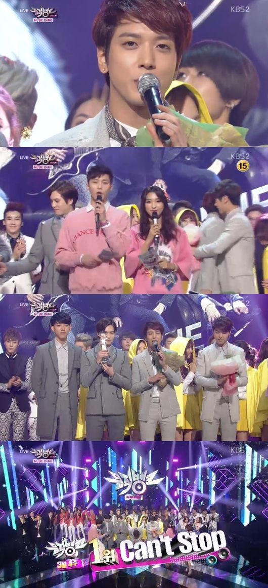 씨엔블루는 28일 방송된 KBS 2TV 음악 프로그램 '뮤직뱅크'에서 '캔트 스톱(Can't Stop)'으로 1위를 차지했다. 리더 정용화는 "마지막 방송인데 이런 영광 주셔서 감사하다. 팬들에게 상 돌리겠다. 앞으로도 멋진 음악으로 보답하겠다. 감사하다"고 말했다.