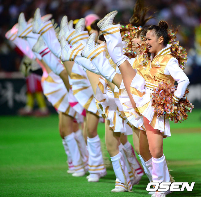 경기에 앞서 소프트뱅크 치어리더 멋진 공연을 선보이고 있다.