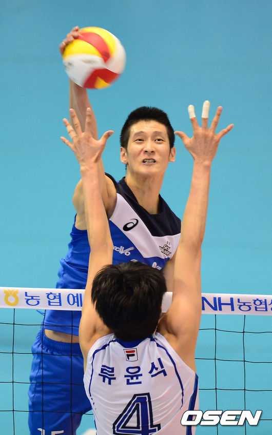 28일 오후 대전 충무실내체육관에서 열린 '2013-2014 NH농협 V리그' 삼성화재 블루팡스와 현대캐피탈 스카이워커스의 챔피언결정전 1차전, 2세트 현대캐피탈 문성민이 강타를 날리고 있다.