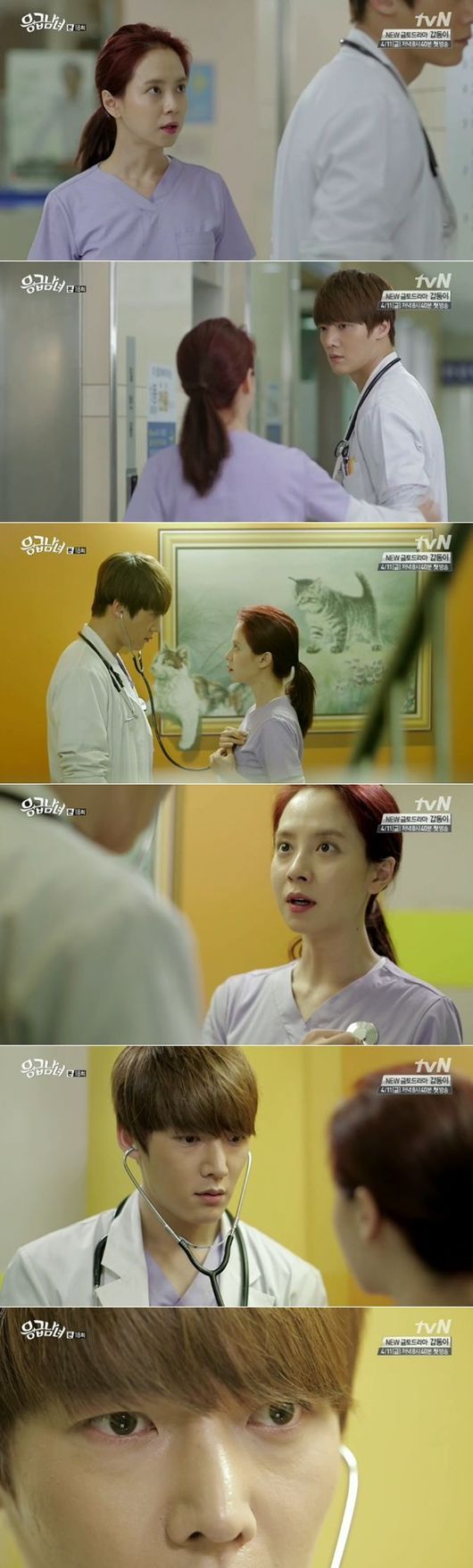 '응급남녀' 송지효가 최진혁에게 자신의 두근거리는 심장 소리를 청진기로 들려주는 '청진기 고백'을 했다.