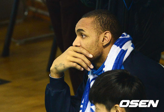 경기를 마치고 1세트때 부상으로 교체된 현대캐피탈 아가메즈가 경기를 지켜보고 있다./ rumi@osen.co.kr