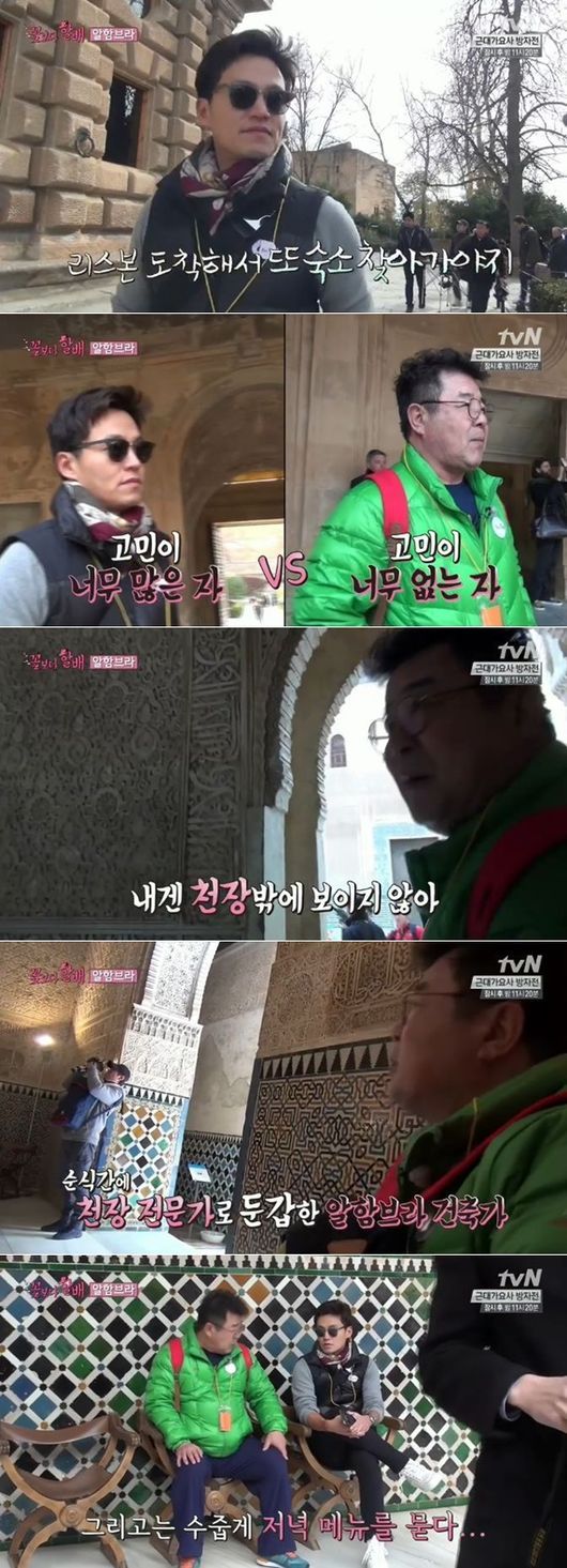 백일섭이 스페인의 그라나다의 유적지에서 여러 궁전들을 둘러보며 천장에 연신 감탄사를 내뱉었다.