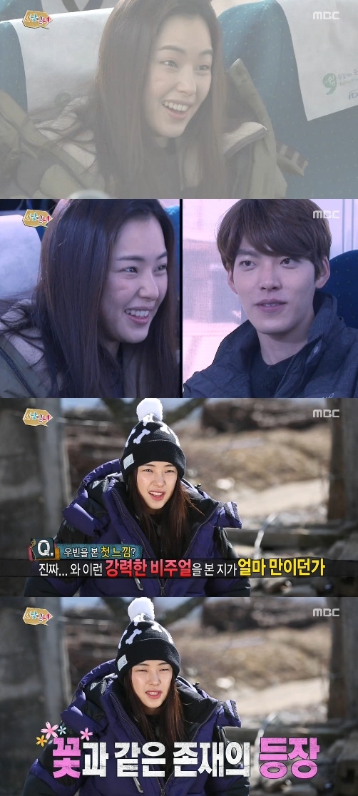 이날 김우빈의 뒷모습을 확인한 이하늬는 “남자게스트야? 에헤라디야”라며 자축해 웃음을 자아냈다. 이어 김우빈과 인사를 나눈 이하늬는 “너무 말랐다”라며 김우빈의 첫인상을 밝혔다.
