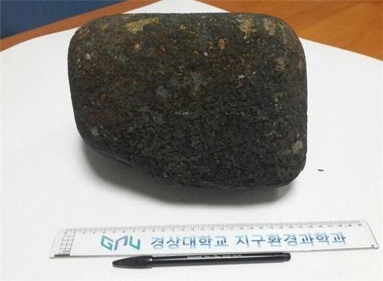 28일 오전 좌용주 경상대학교 지구환경과학과 교수는 기자회견을 통해 "진주시 가좌동 주민인 김만식(56) 씨가 지난 17일 오전 10시10분께 차를 운전하던 중 경남 진주시 집현면 덕오리 한 도로변 작은 개울에서 검은 물체를 발견, 경상대로 찾아와 1차 감정한 결과 운석으로 잠정 판명됐다"고 밝혔다.