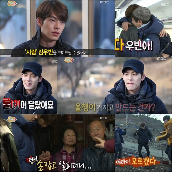 무엇보다 압권은 김우빈의 어설픈 막춤. 이날 밭에서 냉이를 캐던 김우빈은 노래를 못한다며 철벽 방어했다. 그러나 다른 출연자들이 오승근의 ‘내 나이가 어때서’를 열창하는 김민종의 노래에 맞춰 막춤을 추기 시작하자, 그 역시 눈치를 살핀 후 막춤 대열에 합류해 웃음을 자아냈다.