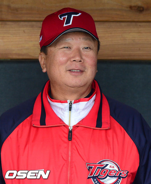 29일 오후 대구 시민구장에서 '2014 한국야쿠르트 세븐 프로야구'삼성 라이온즈와 KIA 타이거즈의 개막전 경기가 열린다. 선동열 감독이 덕아웃에서 미소짓고 있다.