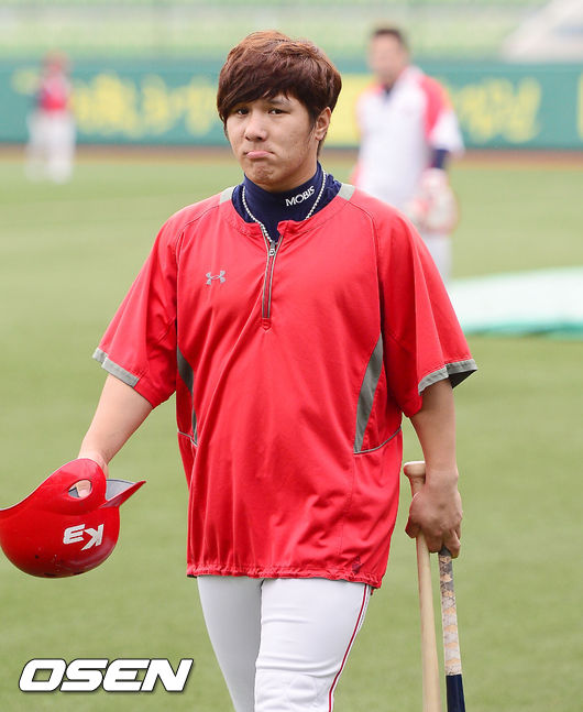 29일 오후 대구 시민구장에서 '2014 한국야쿠르트 세븐 프로야구'삼성 라이온즈와 KIA 타이거즈의 개막전 경기가 열린다. KIA 김선빈이 비가 약간씩 내리는 그라운드에 걸어나오며 아쉬운 표정을 짓고 있다.