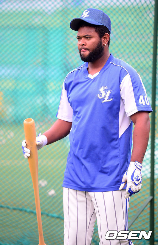 29일 오후 대구 시민구장에서 '2014 한국야쿠르트 세븐 프로야구'삼성 라이온즈와 KIA 타이거즈의 개막전 경기가 열린다. 경기 전 삼성 나바로가 비장한 표정으로 그라운드에 나서고 있다.