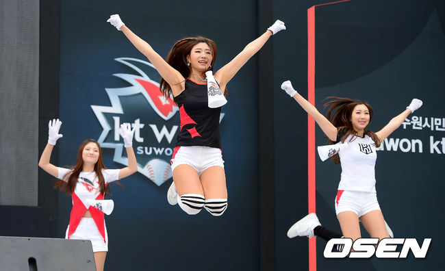 Kt WIZ 치어리더가 화려한 공연을 펼치고 있다.
