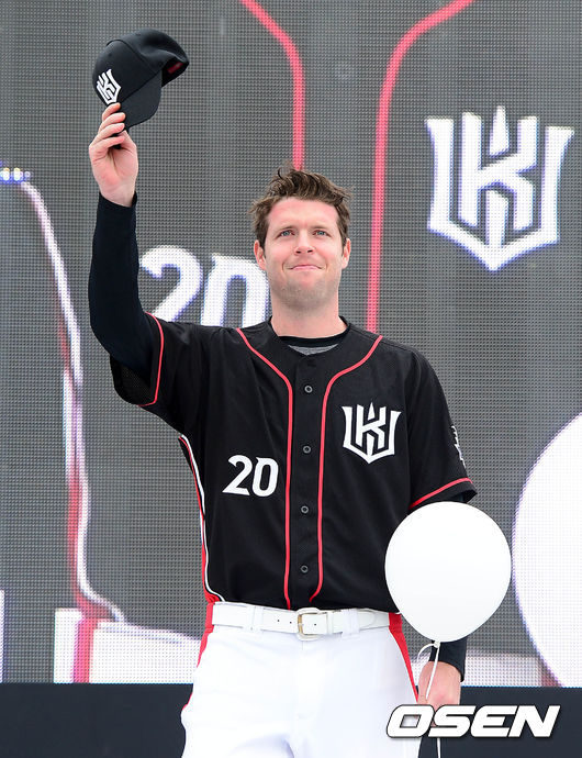 Kt WIZ 마이크가 팬들을 향해 인사하고 있다.