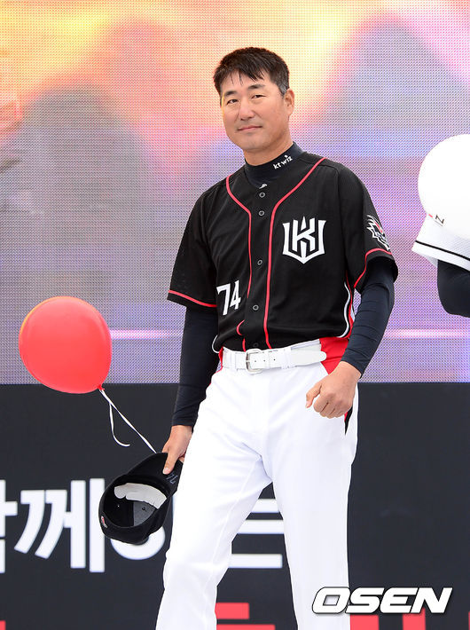 Kt WIZ 정명원 코치가 팬들을 향해 인사하고 있다.