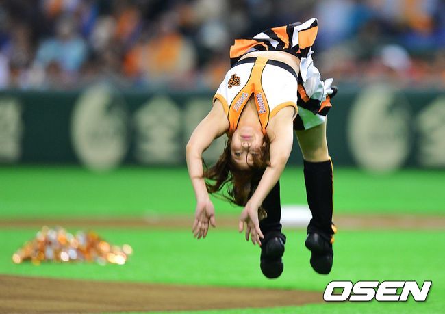 경기 시작을 앞두고 요미우리 치어리더들이 멋진 응원을 펼치고 있다.