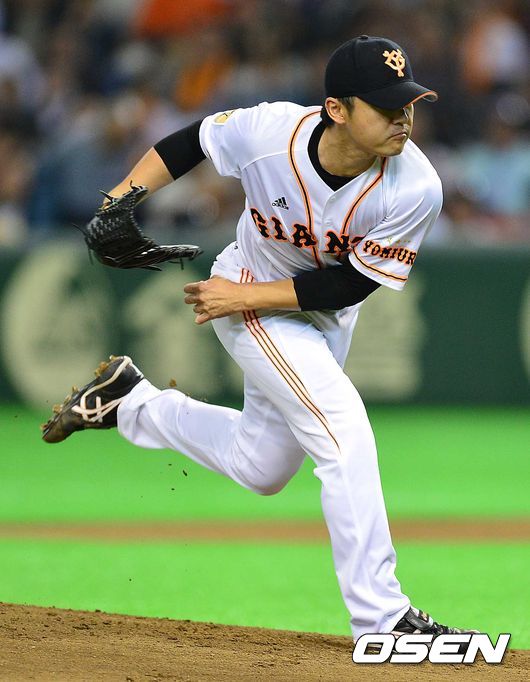 요미우리 선발 스기우치 도시야가 힘차게 공을 뿌리고 있다.