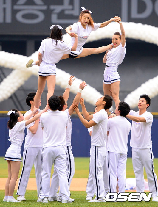 29일 오후 서울 잠실구장에서 열린 '2014 한국야쿠르트 세븐 프로야구' 두산 베어스와 LG 트윈스의 경기에 앞서 식전행사가 진행되고 있다.