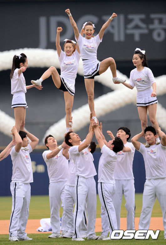 29일 오후 서울 잠실구장에서 열린 '2014 한국야쿠르트 세븐 프로야구' 두산 베어스와 LG 트윈스의 경기에 앞서 식전행사가 진행되고 있다.