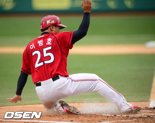 29일 오후 대구 시민구장에서 '2014 한국야쿠르트 세븐 프로야구'삼성 라이온즈와 KIA 타이거즈의 개막전 경기가 열렸다. 1회초 2사 주자 1루 KIA 신종길의 중견수 뒤 1타점 적시타 때 이범호가 홈으로 몸을 날려 세이프되고 있다.