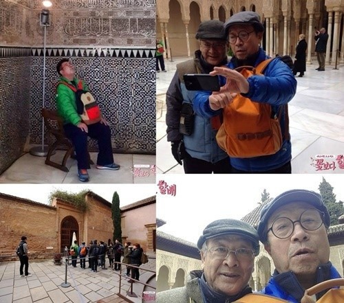 알람브라 궁전이 꽃보다 할배로 인해 화제가 됐다. 29일 '꽃할배3' 공식 페이스북에 알람브라 궁전을 배경으로한 이순재와 신구의 셀카 사진이 공개됐다.