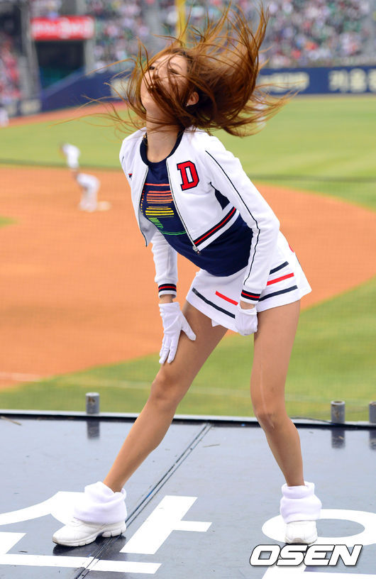 29일 오후 서울 잠실구장에서 열린 '2014 한국야쿠르트 세븐 프로야구' 두산 베어스와 LG 트윈스의 경기, 두산 치어리더가 멋진 공연을 펼치고 있다.
