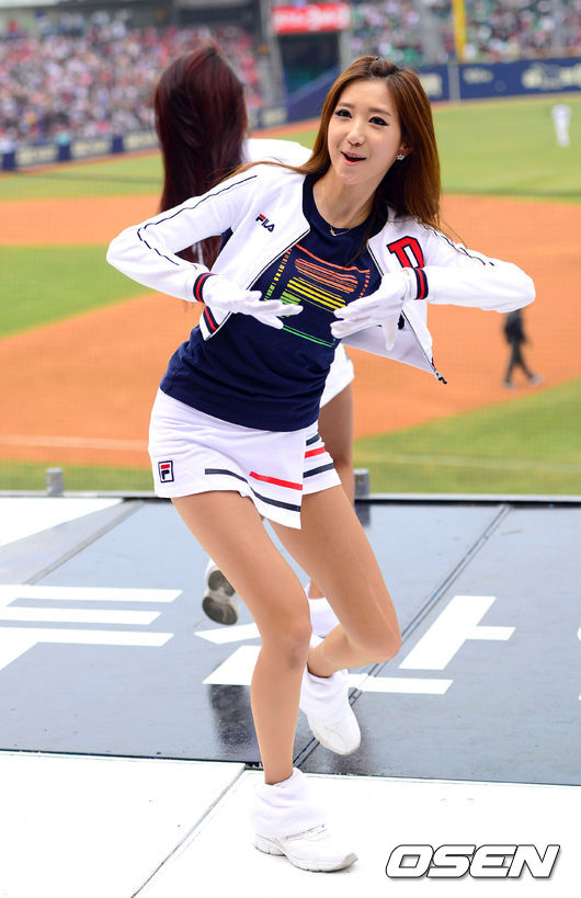 29일 오후 서울 잠실구장에서 열린 '2014 한국야쿠르트 세븐 프로야구' 두산 베어스와 LG 트윈스의 경기, 두산 치어리더가 멋진 공연을 펼치고 있다.
