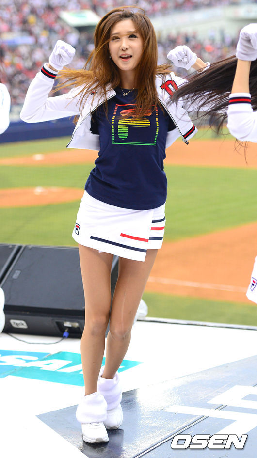 29일 오후 서울 잠실구장에서 열린 '2014 한국야쿠르트 세븐 프로야구' 두산 베어스와 LG 트윈스의 경기, 두산 치어리더가 멋진 공연을 펼치고 있다.