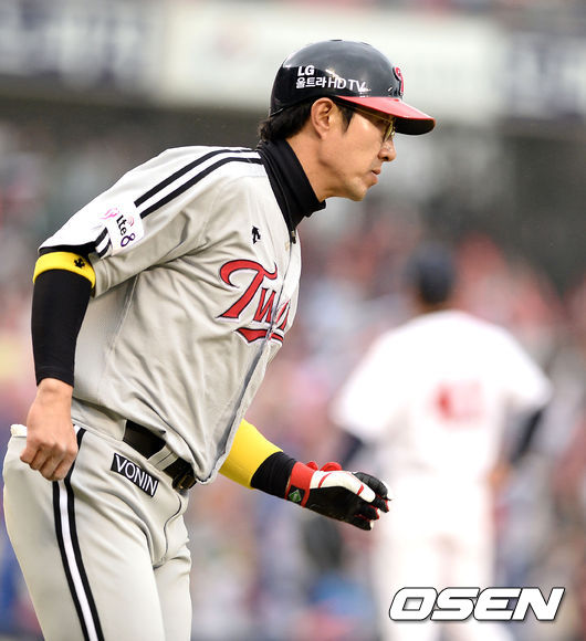 29일 오후 서울 잠실구장에서 열린 '2014 한국야쿠르트 세븐 프로야구' 두산 베어스와 LG 트윈스의 경기, 8회초 LG 선두타자 정성훈이 솔로홈런을 날리고 베이스를 돌고 있다.