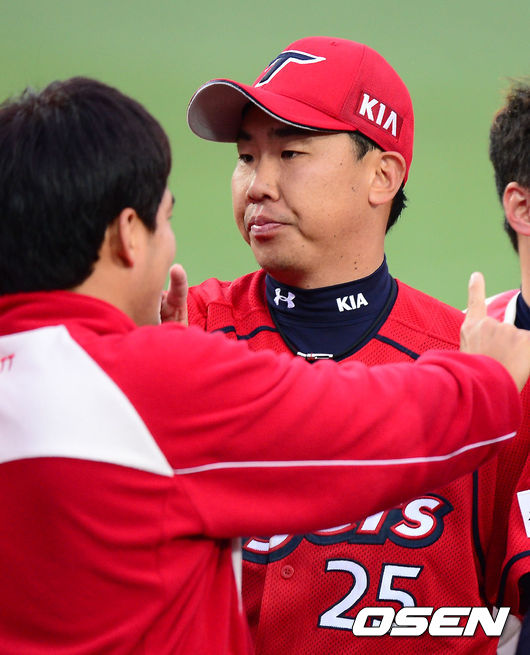 경기를 마치고 KIA 이범호가 동료들과 하이파이브를 하고 있다./ rumi@osen.co.kr