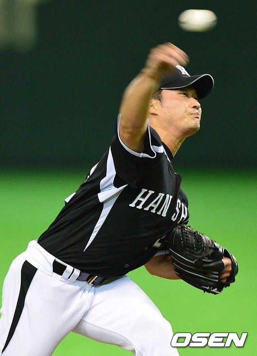 9회말 요미우리 공격 때 마운드에 오른 한신 마무리투수 오승환이 힘차게 공을 뿌리고 있다. /dreamer@osen.co.kr