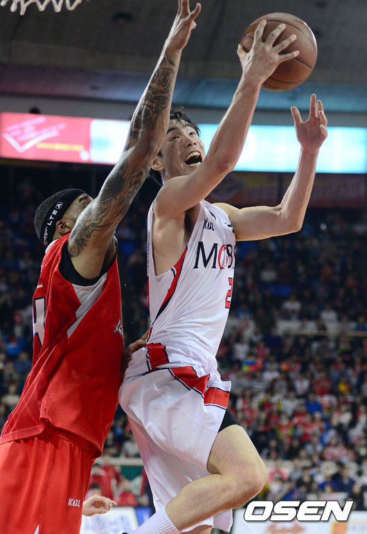 29일 오후 서울 잠실학생체육관서 열린 2013-2014 프로농구 4강 플레이오프 4차전 서울 SK와 울산 모비스의 경기, 1쿼터 모비스 이지원이 골밑슛을 성공시키고 있다
