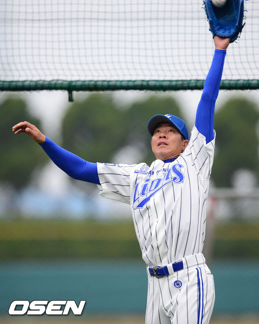 30일 오전 경상북도 경산시 경산볼파크에서 삼성 라이온즈 임창용이 복귀 후 첫 훈련을 가졌다.