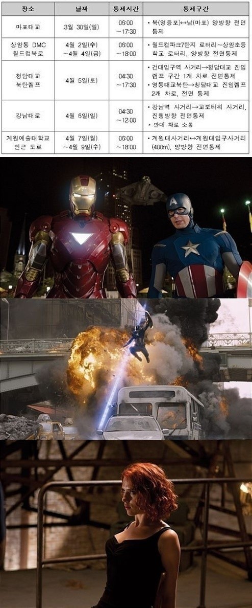 헐리우드 영화 ‘어벤져스 2’가 오는 30일부터 한국 촬영 일정에 돌입한다. 서울 주요 공간에 대한 교통 통제 계획이 발표된 가운데 촬영 현장도 교통통제가 이뤄질 전망이다.