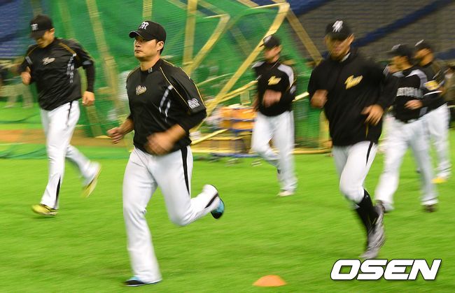 '끝판대장' 오승환이 30일 오후 일본 도쿄돔에서 열리는 '2014 일본프로야구' 요미우리 자이언츠 대 한신 타이거스의 경기를 앞두고 달리기로 몸을 풀고 있다.