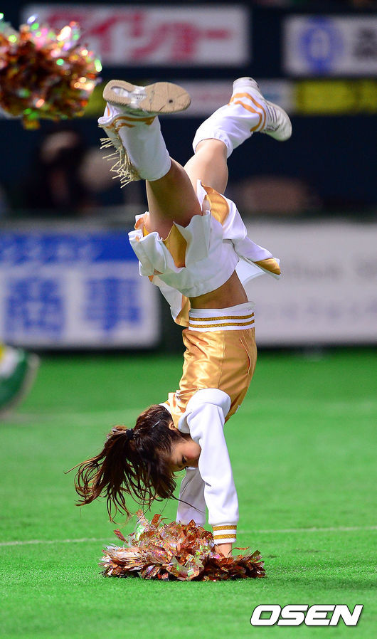 경기에 앞서 소프트뱅크 치어리더가 화려한 공연을 선보이고 있다