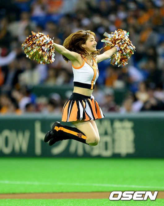 경기 시작을 앞두고 요미우리 치어리더들이 멋진 공연을 펼치고 있다.