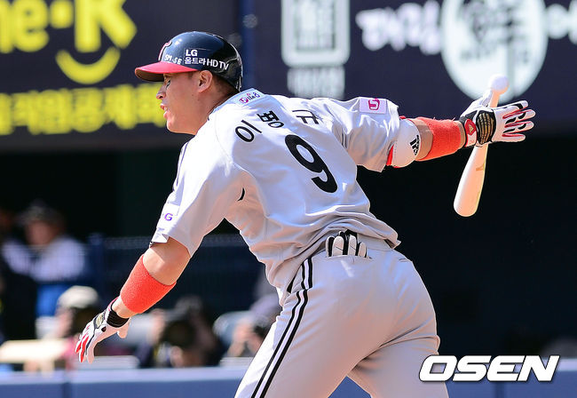 30일 오후 서울 잠실구장에서 열린 '2014 한국야쿠르트 세븐 프로야구' 두산 베어스와 LG 트윈스의 경기, 1회초 1사 만루 LG 이병규가 선취 2타점 적시타를 날리고 있다.